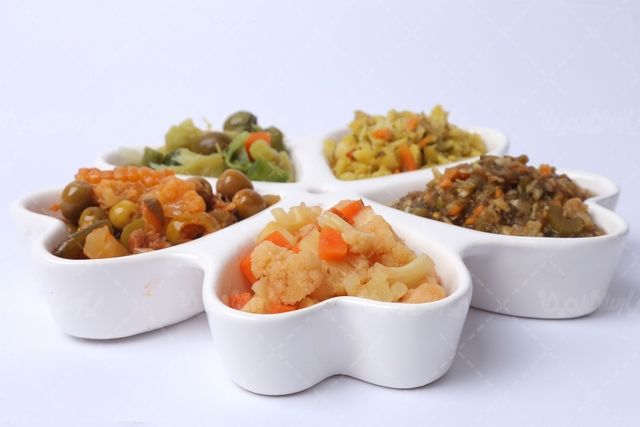 در تصویر بالا ترشیجات گل کلم ، ترشی مخلوط ، زیتون و .. ایرانی را مشاهده میکنید.