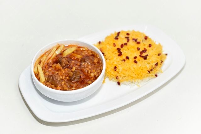 در تصویر بالا از خورش قیمه با پلو استفاده شده است.
