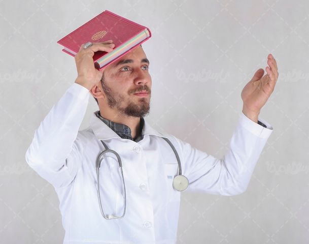 در این تصویر از دکتر در حال دعا کردن استفاده شده است.