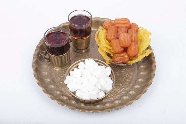 در تصویر بالا از زولبیا و بامیه برای افطار استفاده شده است.