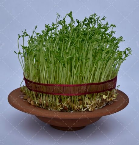 در این تصویر از سبزه برای سفره عید نوروز ایرانی استفاده شده است.