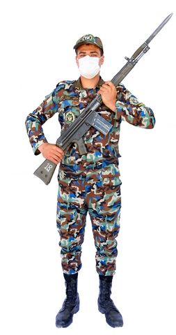در این تصویر از مرد با لباس نظامی استفاده شده است.