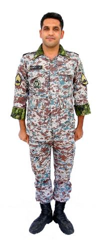 در این تصویر از مرد با لباس نظامی استفاده شده است.