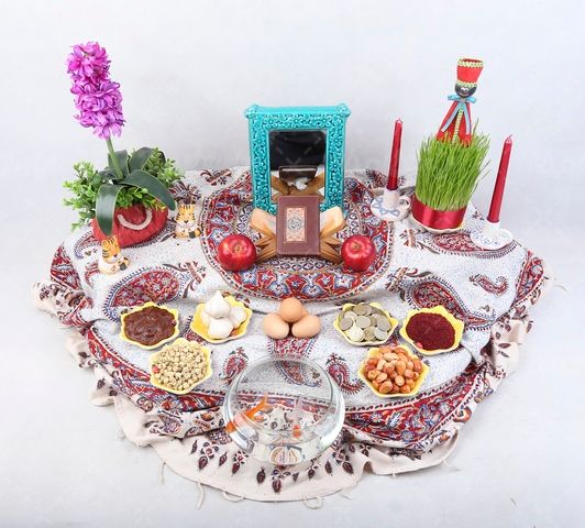 در این تصویر از مدل سفره عید نوروز ایرانی استفاده شده است.