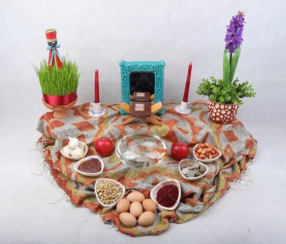 در این تصویر از مدل سفره عید نوروز ایرانی استفاده شده است.