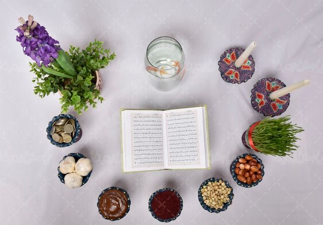 در این تصویر از مدل سفره عید نوروز ایرانی استفاده شده است.