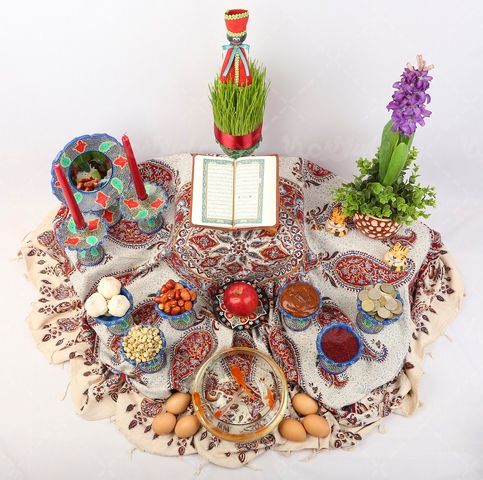 در این تصویر از مدل سفره عید نوروز ایرانی استفاده شده است.