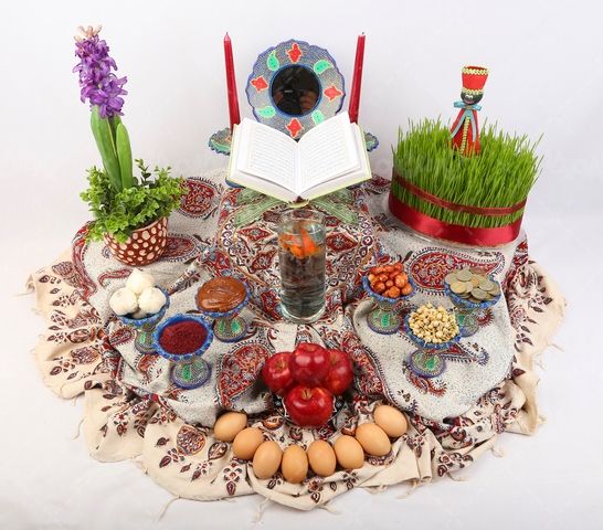 در این تصویر از مدل سفره عید نوروز ایرانی استفاده شده است.