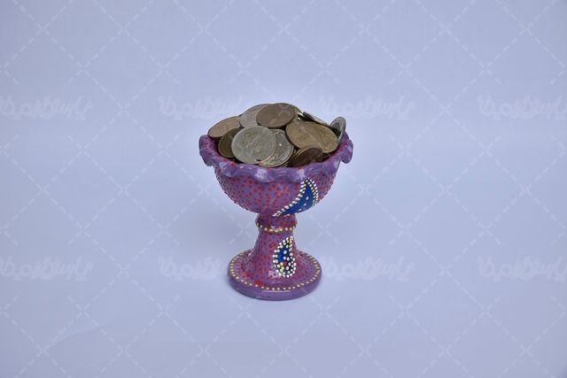 در تصویر بالا سکه برای سفره عید نوروز با ظرف سفالی را مشاهده میکنید.