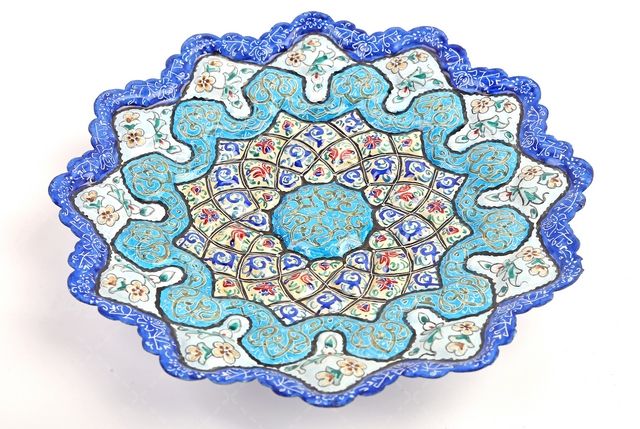 در این تصویر از ظروف میناکاری ایرانی استفاده شده است.