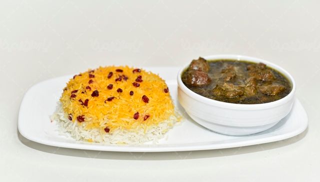 در تصویر بالا از قورمه سبزی و پلو استفاده شده است.
