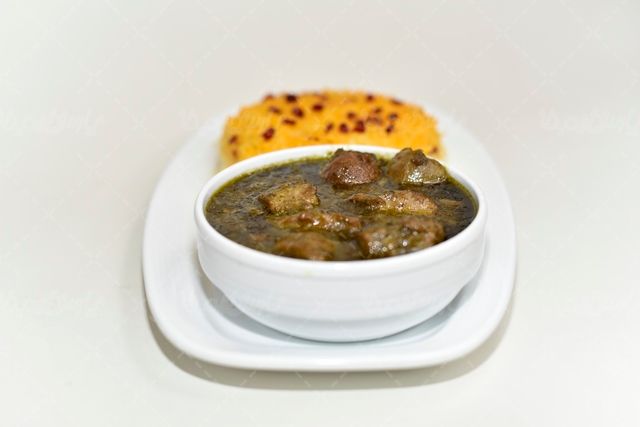 در تصویر بالا از قورمه سبزی و پلو استفاده شده است.