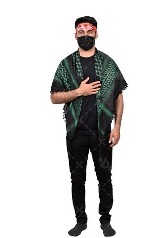 در تصویر بالا از مرد با لباس مشکی و سربند استفاده شده است.