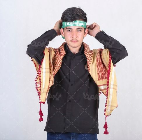 در تصویر بالا از مرد با لباس مشکی و چفیه استفاده شده است.
