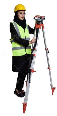 در این تصویر از خانم مهندس با دستگاه نقشه بردار استفاده شده است.