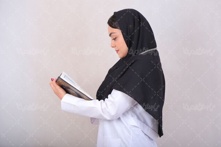 در این تصویر از پزشک خانم ایرانی و قرآن استفاده شده است.