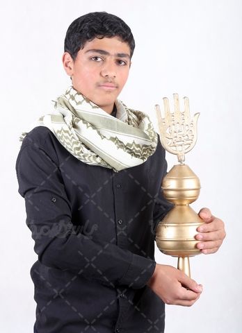در تصویر بالا از پسر با لباس مشکی و چفیه استفاده شده است.