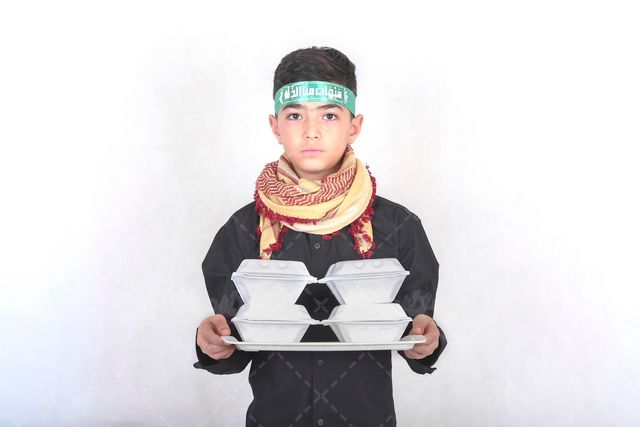 در تصویر بالا از پسر با لباس مشکی با چفیه استفاده شده است.
