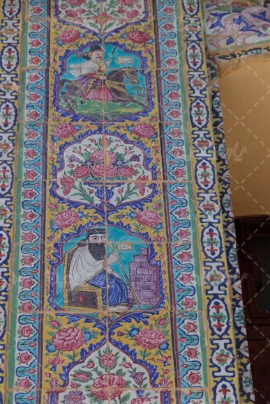 در تصویر بالا کاشی کاری با چهره های پادشاهان قدیم که به زیبایی طراحی شده است را مشاهده میکنید.