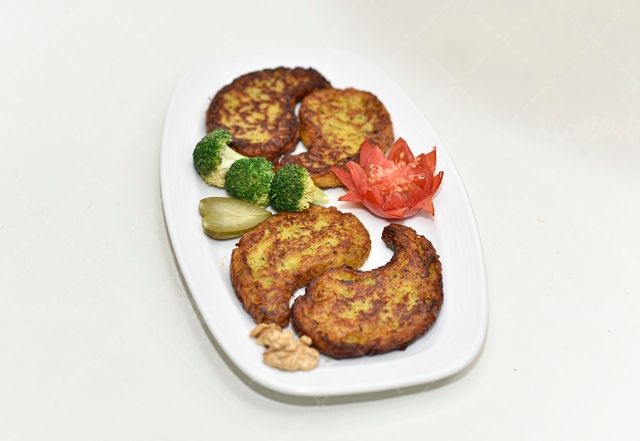 در تصویر بالا از کتلت ، گوجه فرنگی ، کلم بروکلی استفاده شده است.