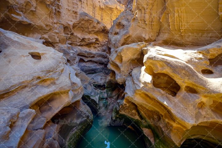 در تصویر بالا از تنگه چاهکوه یکی از جاذبه های گردشگری قشم در استان هرمزگان استفاده شده است.
