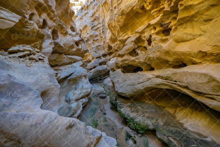 در تصویر بالا از تنگه چاهکوه یکی از جاذبه های گردشگری قشم در استان هرمزگان استفاده شده است.
