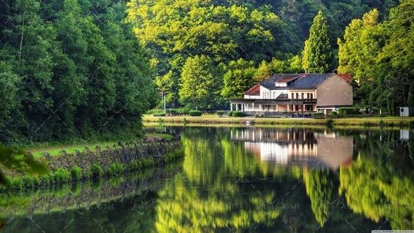 توضیحات : خانه ویلایی جنگل، رودخانه، رودخانه جنگلی تصویر دختان در آب حجم : 4 مگابایت