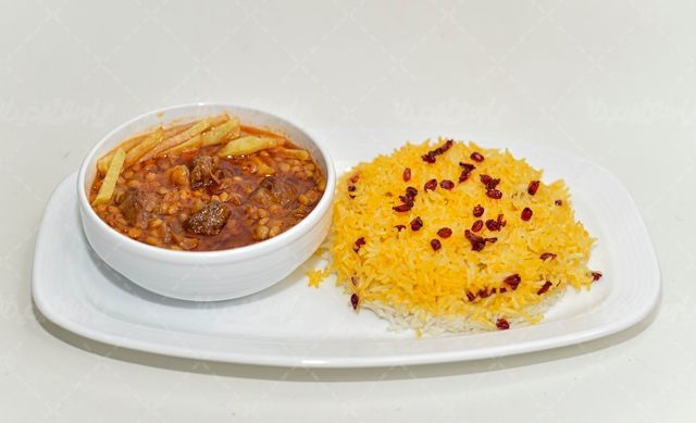 در تصویر بالا از خورش قیمه با پلو استفاده شده است.
