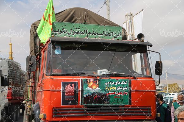 کامیون کمک های مردمی به اربعین امام حسینی , دانلود عکس کاروان کمک های مردمی به اربعین حسینی , تصویر با کیفیت کاروان کمک های مردمی به اربعین حسینی , کاروان کمک های مردمی به اربعین حسینی , عکس با کیفیت کاروان کمک های مردمی به اربعین حسینی , بدرقه با قرآن ,