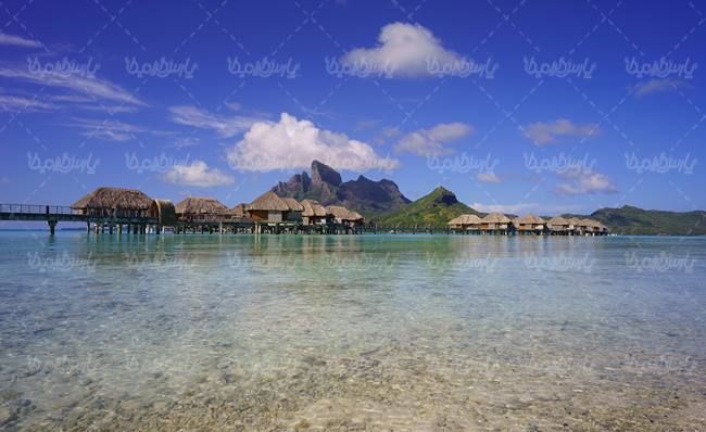 دریا منظره چشم انداز آب دریا جزیره آلاچیق روی آب آسمان آبی تفرجگاه کنار دریا ( دریا, منظره , چشم انداز, آب دریا, جزیره, آلاچیق روی آب , آسمان آبی, تفرجگاه کنار دریا )