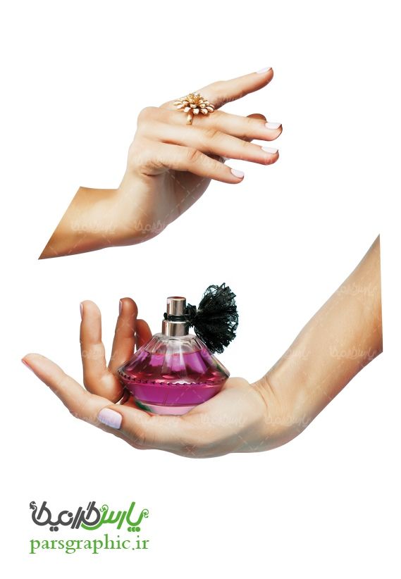 همانطور که مشاهده می نمایید در این مجموعه از تصویر دوربری شده دست انسان ( دست دختر ) و عطر در دست قرار گرفته است .