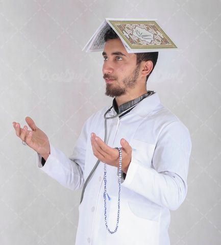 در این تصویر از دکتر در حال دعا کردن استفاده شده است.