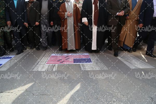 تصویر با کیفیت راهپیمایی 22 بهمن و لگد کردن پرچم آمریکا