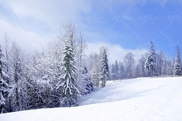 توضیحات : منظره طبیعت چشم انداز برف درخت تابش نور برف روی درخت منظره برفی