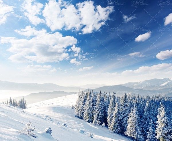 توضیحات : منظره طبیعت چشم انداز برف درخت تابش نور برف روی درخت منظره برفی