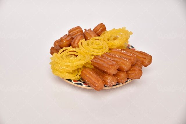 در تصویر بالا از زولبیا و بامیه برای افطار استفاده شده است.