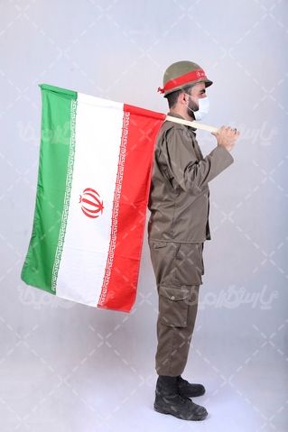 تصویر با کیفیت سرباز ایرانی با پرچم