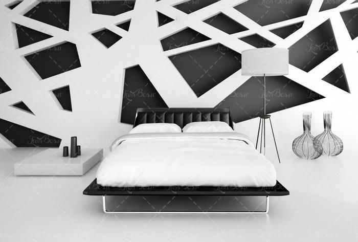سرویس خواب تخت پاتختی سرویس خواب سفید و مشکی دکوراسیون و طراحی اتاق خواب آپاژور دکور اتاق خواب روتختی ( سرویس خواب , تخت خواب , پاتختی , آپاژور , دکوراسیون داخلی , روتختی )