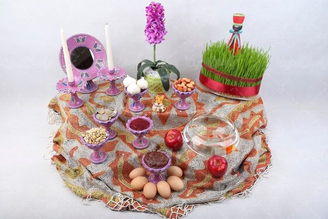 در این تصویر از مدل سفره عید نوروز ایرانی استفاده شده است.