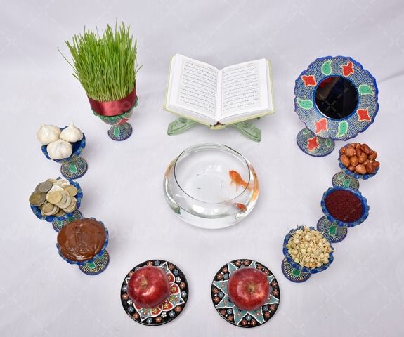 در این تصویر از مدل سفره عید نوروز ایرانی استفاده شده است.