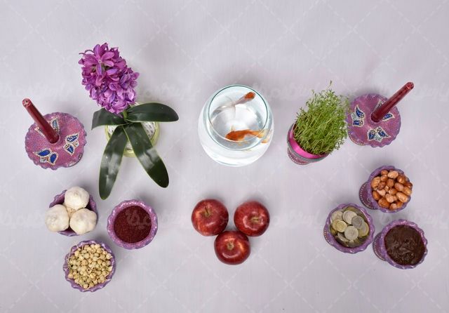 در این تصویر از مدل سفره عید نوروز ایرانی استفاده شده است.