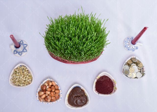 در این تصویر از مدل سفره عید نوروز ایرانی استفاده شده است.