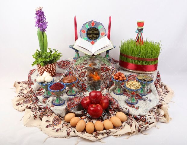 در این تصویر از مدل سفره عید نوروز ایرانی استفاده شده است.