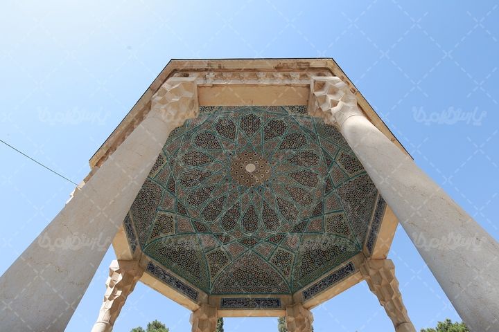 سقف آرامگاه حافظ شیرازی با کاشی کاری تزیین شده که رنگ های بسیار خاصی در آن نقش دارند و چشمان زیادی به خود جذب میکند.