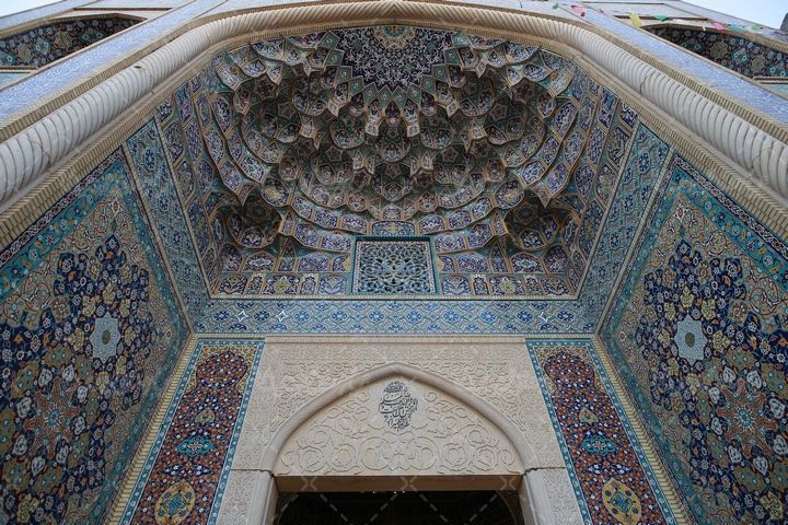 در تصویر بالا سقف کاشی کاری حرم شاهچراغ در شیراز را مشاهده میکنید. حرم شاهچراغ بهعنوان بزرگترین زیارتگاه مذهبی شیراز حساب میآید.