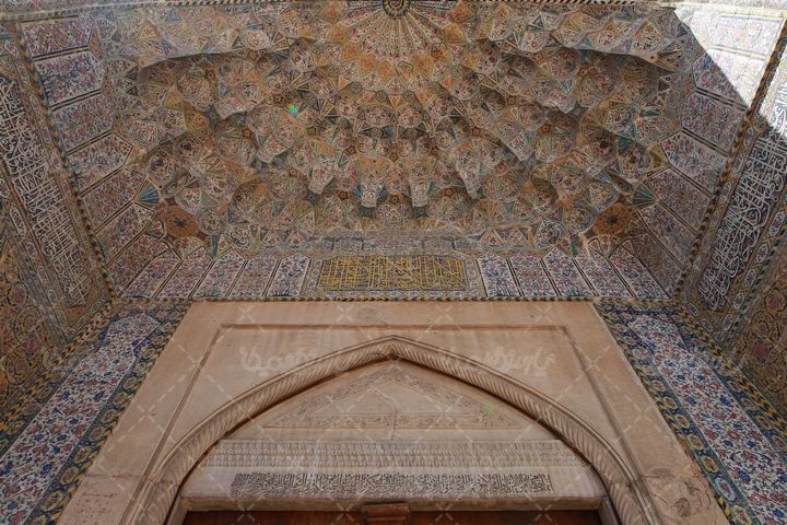 در تصویر بالا سقف بسیار زیبای مسجد وکیل را مشاهده میکنید.