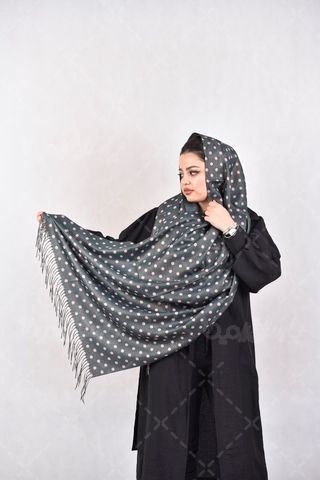 در تصویر بالا شال خال خالی طوسی و صورتی را مشاهده میکنید.
