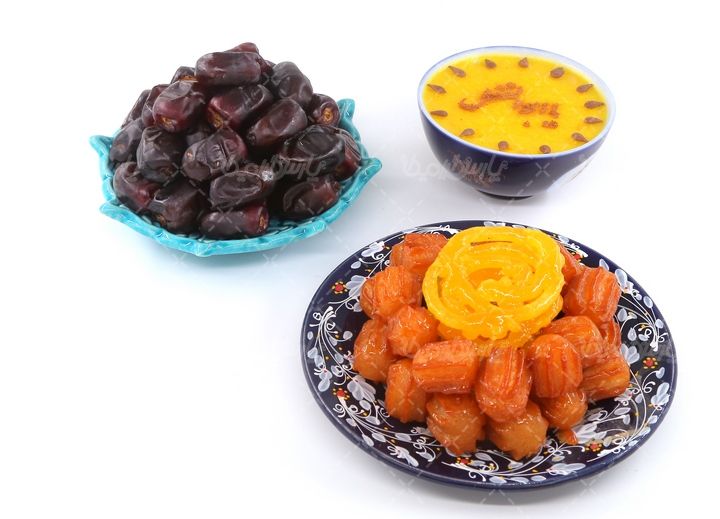 تصویر با کیفیت خرما و شیرینی و شله زرد
