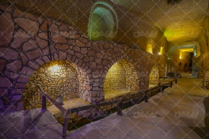 در تصویر بالا از شهر زیرزمینی کاریز یکی از جاذبه های گردشگری کیش در استان هرمزگان استفاده شده است.