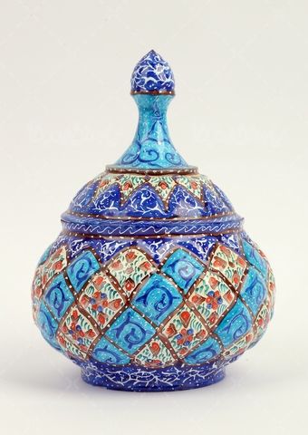 در این تصویر از ظروف میناکاری ایرانی استفاده شده است.